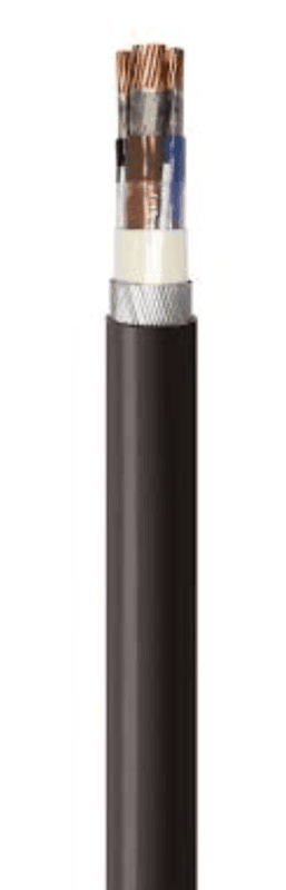 Standed Plain Annealed Cu Wire, MICA-Glass Fire Resistant Tape, Covered by a Extruded Layer of XLPE, Polyester Tape, Zero Halogen Low Smoke, Galvanied Steel Wire Armour, Zero Halogen Low Smoke. Sheath Colour:- Black.